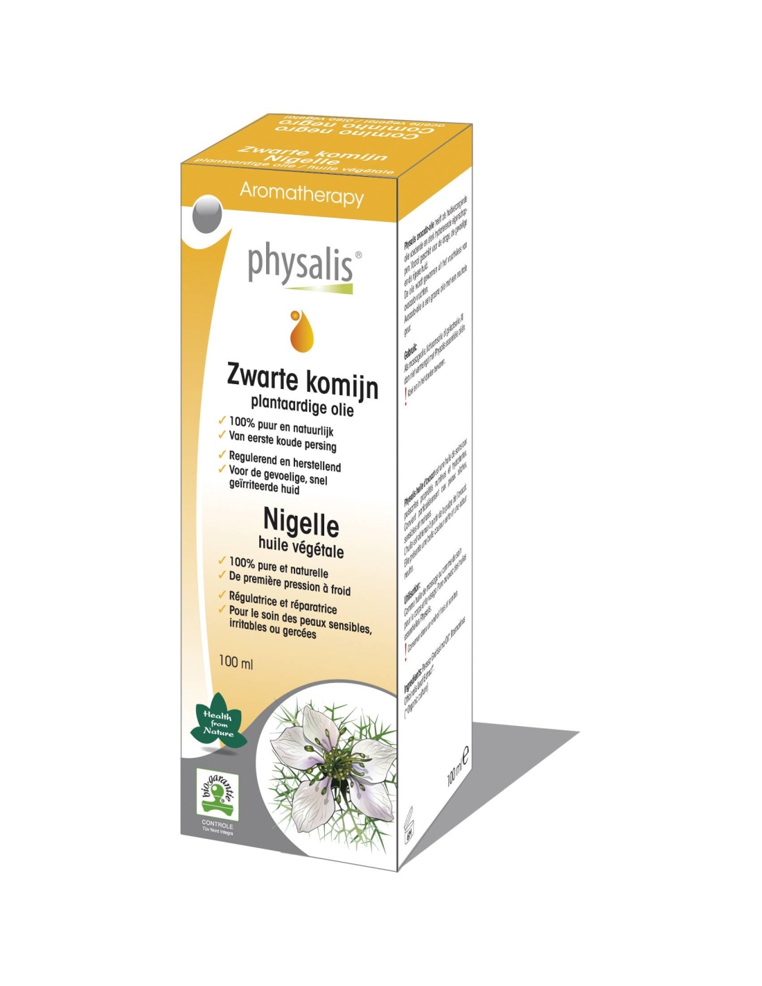 El aceite de comino negro se puede usar como aceite de masaje o cosmético de uso facial y corporal. Puro o con aceites esenciales Physalis.