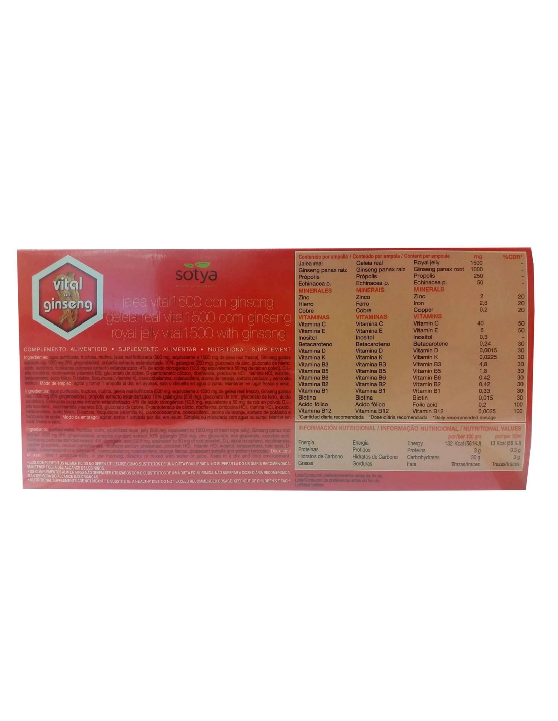 Jalea real vital con ginseng 20 viales Sotya