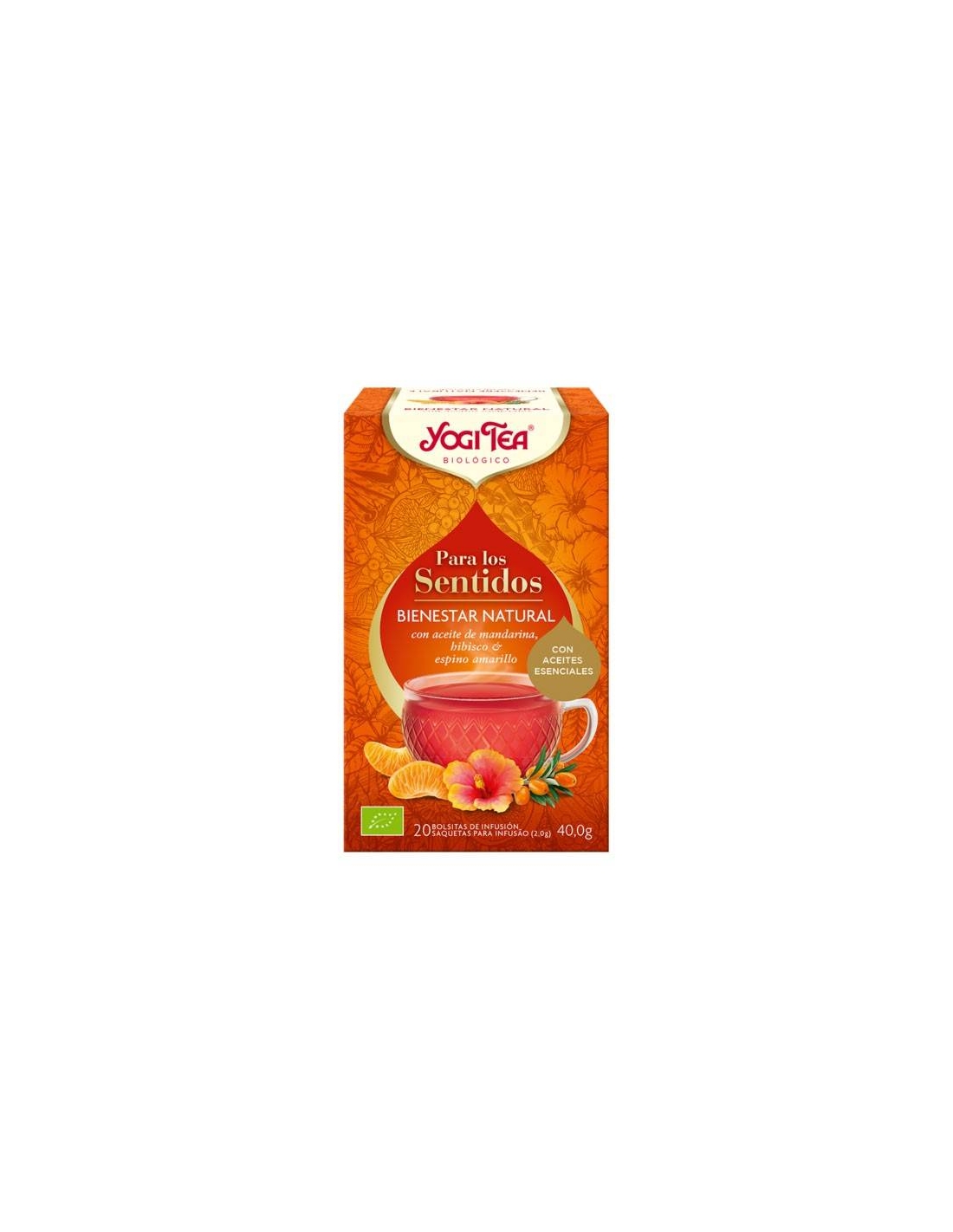 YOGI TEA Bienestar Natural inunda los sentidos con el afrutado aceite esencial de mandarina. Junto con el fresco espino amarillo y el hibisco, ligeramente ácido, recuperamos fuerza para superar todo lo que nos presente el día.