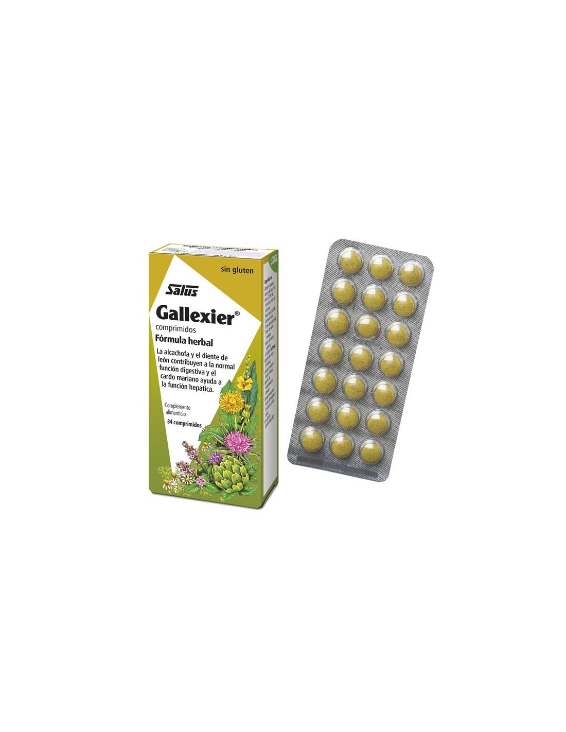 Es un complemento alimenticio en comprimidos . Gallexier comprimidos está elaborado a base de una mezcla de extractos secos. La alcachofa y el diente de león contribuyen a la normal función digestiva y el cardo mariano y la cúrcuma ayudan a la función hepática.