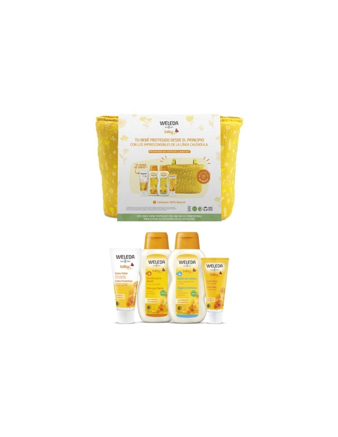 Cuida y protege la piel de tu bebe desde el primer día con ingredientes 100% naturales. La caléndula es el ingrediente principal de estos productos, que es ideal para productos para pieles sensibles.