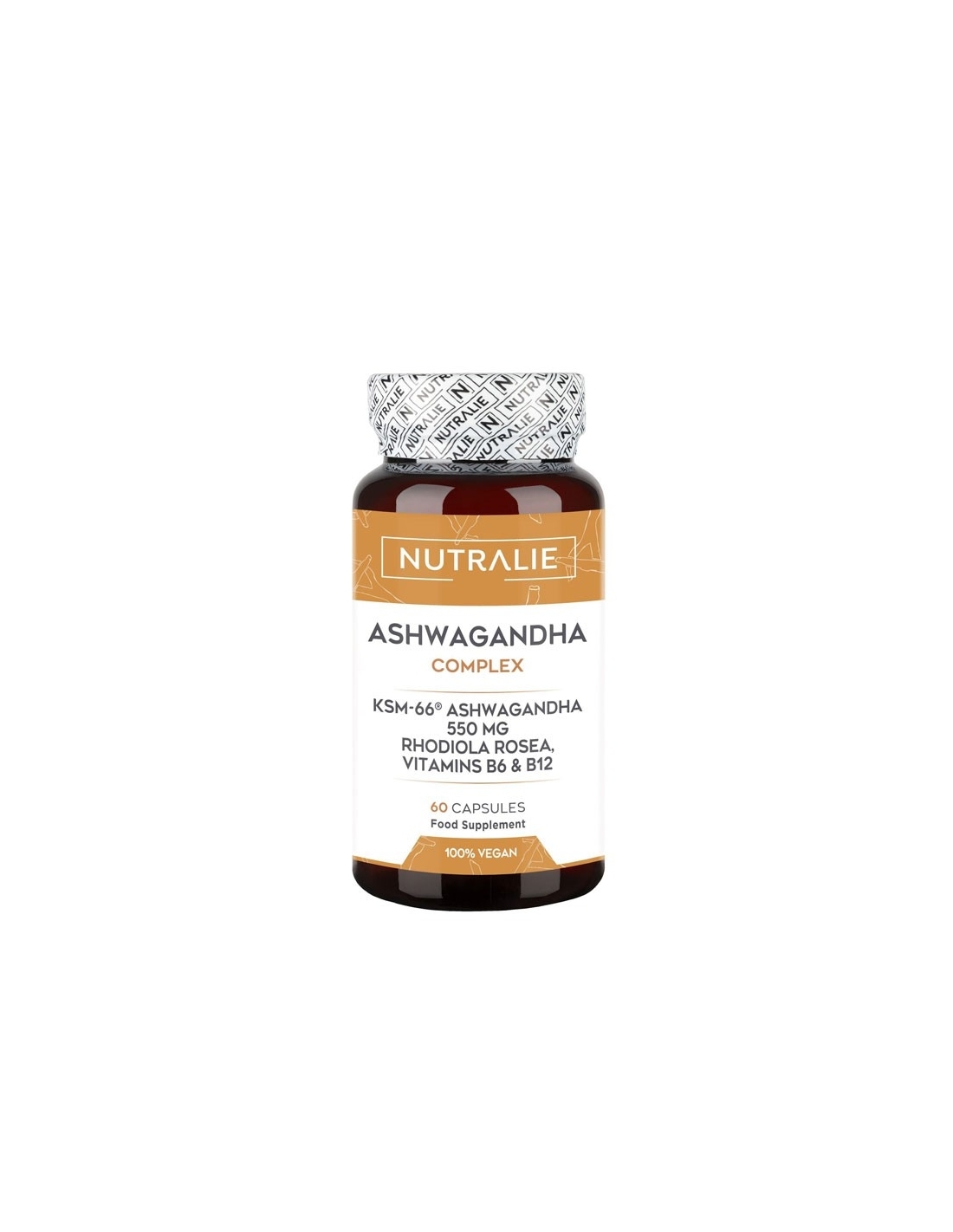 Complemento alimenticio con extracto único de raíz de Ashwagandha; una hierba tradicional india, también conocida como Withania Somnifera, muy utilizada en el ámbito ayurvédico.