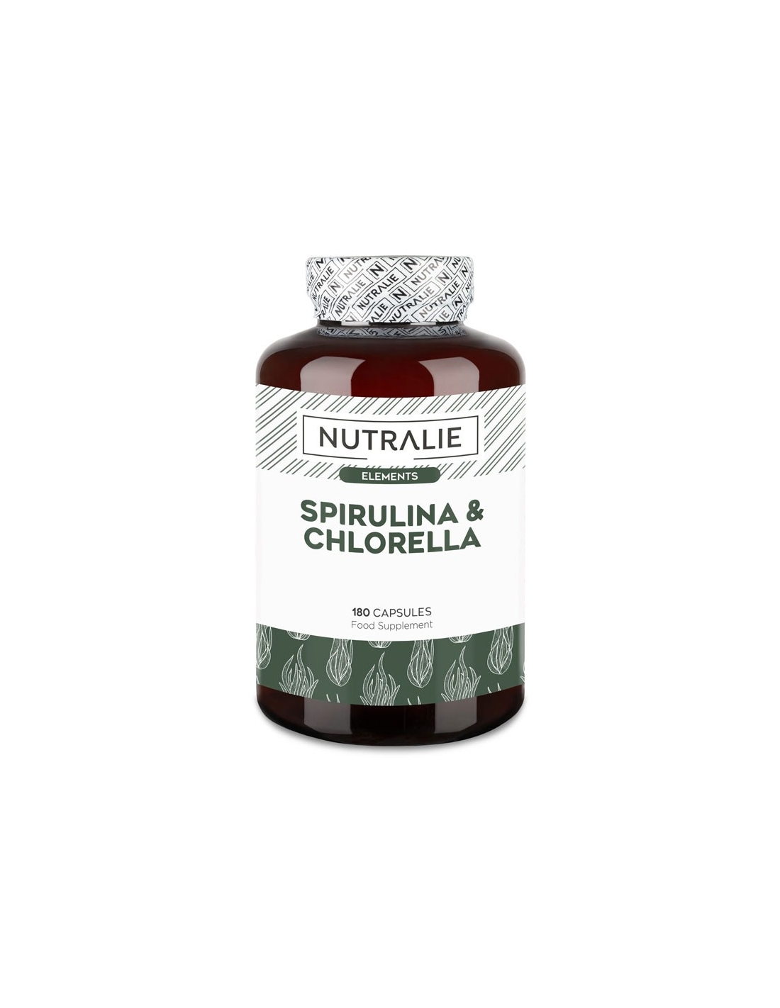 Spirulina & Chlorella de Nutralie es un suplemento alimenticio en forma de cápsulas compuesto por dos algas ricas en nutrientes: Spirulina y Chlorella. Cada cápsula contiene 500 mg de Spirulina y 500 mg de Chlorella, ambas cultivadas de forma orgánica y cuidadosamente seleccionadas para garantizar su máxima calidad y pureza. Estas algas son ricas en proteínas, vitaminas, minerales y antioxidantes, y se cree que tienen propiedades beneficiosas para la salud, como apoyar el sistema inmunológico, mejorar la digestión y aumentar los niveles de energía. Este complemento alimenticio es apto para veganos y se presenta en un envase de 180 cápsulas.