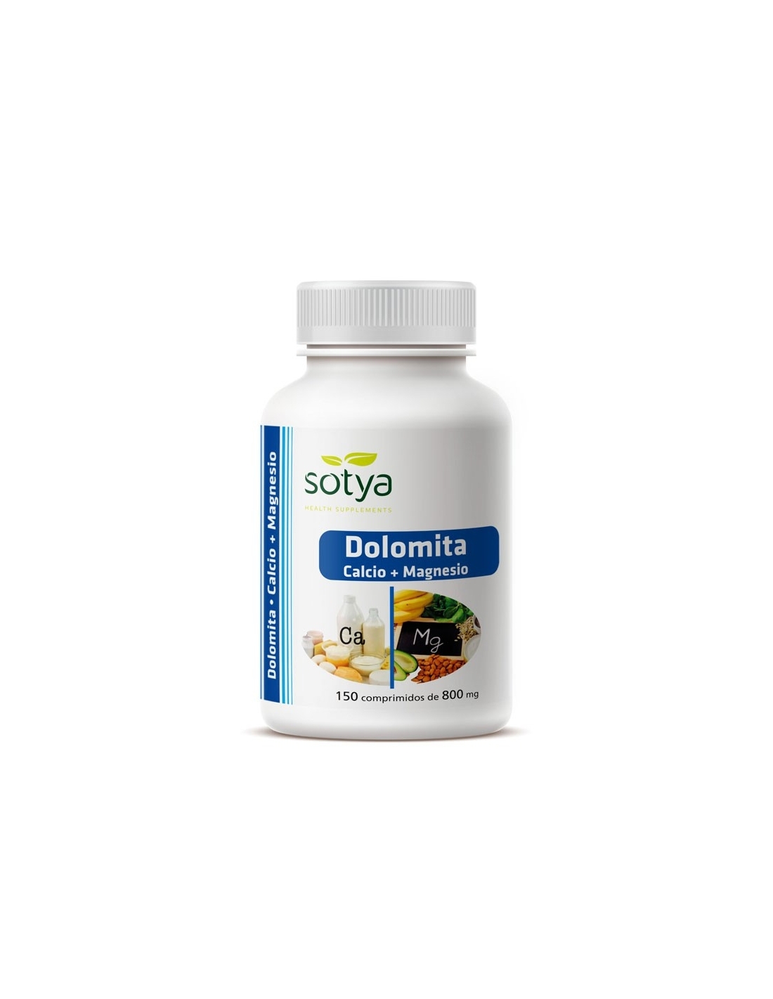 La dolomita es un mineral de bicarbonato de calcio y magnesio, que aporta una proporción media de 31% de calcio y 21% de magnesio de su peso total. El magnesio facilita la fijación del calcio a los huesos y evita los efectos adversos que en ocasiones se presentan al consumir el calcio solo; como lo es la calcificación de tendones y las acumulaciones perjudiciales de calcio en las articulaciones, entre otros daños. La dolomita es fácilmente asimilable y se emplea en el tratamiento de la osteoporosis por su alto contenido en calcio y magnesio, vitales para la salud ósea.