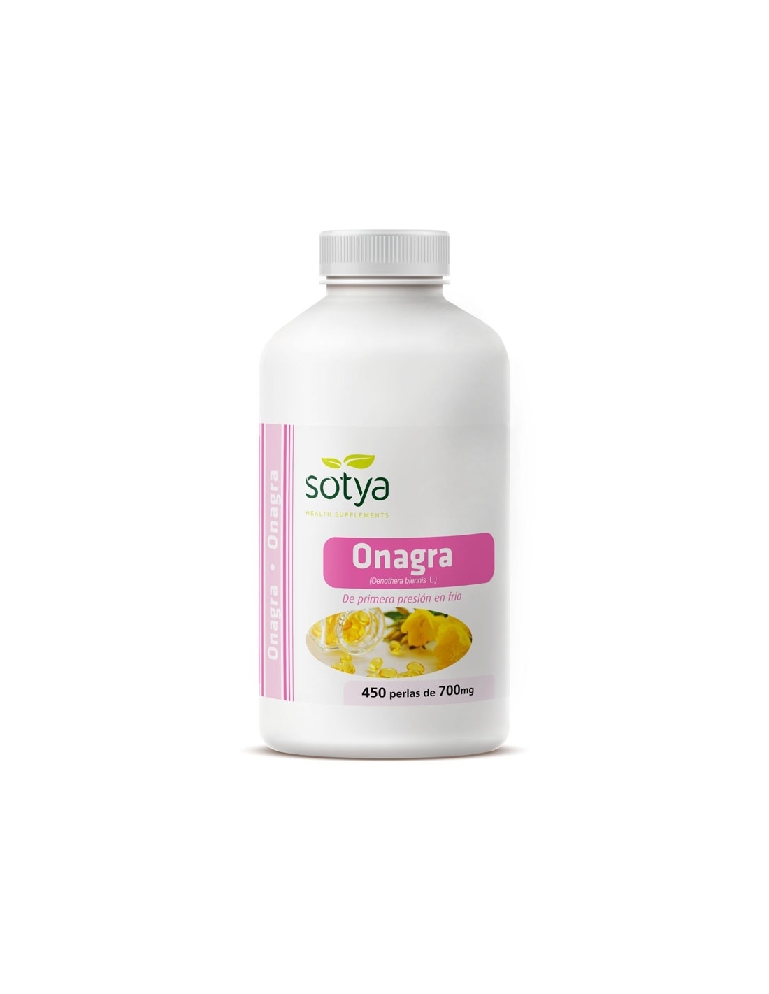 Rico en ácidos grasos esenciales (ácido gammalinoleico y gammalinolénico- GLA) Una carencia de GLA desencadena una serie de problemas como sequedad e irritaciones cutáneas, anormalidades en el hígado, alteraciones en la producción de prostaglandinas e incluso problemas de crecimiento en niños. Además, la onagra tiene efectos reguladores sobre los niveles de estrógenos, progesterona, prolactina y prostaglandinas, lo que hace del aceite de onagra un gran aliado para combatir los síntomas pre-menstruales (retención de líquidos, irritabilidad, dolores abdominales)El GLA se encuentra de forma natural en los triglicéridos que forman los aceites vegetales, en verduras y en algunos frutos secos; sin embargo, una de las mejores fuentes es la semilla de onagra. La necesidad de un aporte suplementario de aceite de onagra aumenta cada día en la sociedad moderna; donde la ingesta de verduras, hortalizas y aceites insaturados es cada vez menor. La cantidad habitual de GLA en el aceite de onagra es de un 9%, pero calidades superiores llegan hasta el 10%.La incorporación a la fórmula de vitamina E, tocoferol, es como antioxidante celular y para proteger el aceite del enranciamiento, de esta forma asegurando el buen estado del aceite.Modo de empleo: