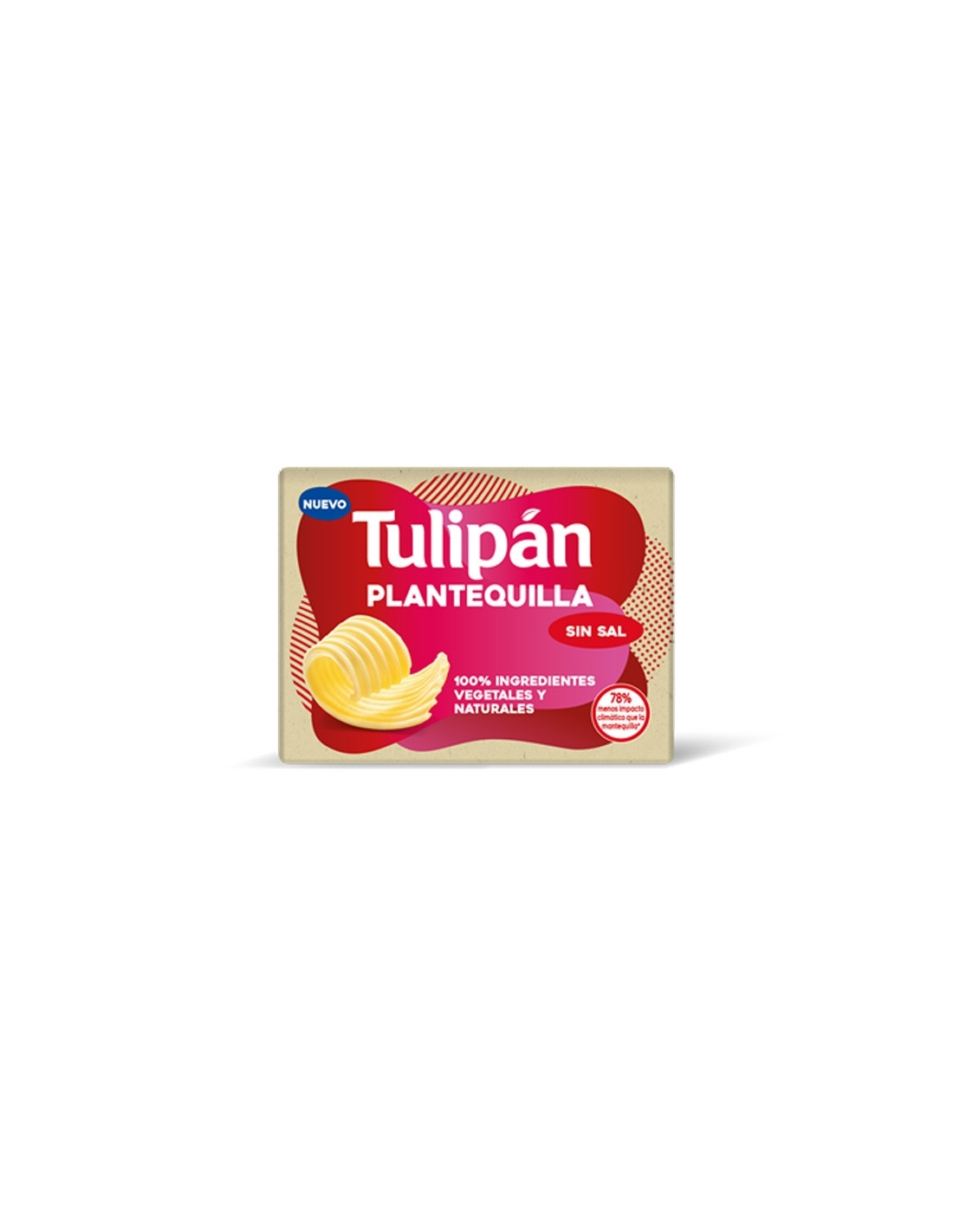 Tulipán Plantequilla unta, cocina y hornea como la mantequilla, todo ello con 100% de ingredientes naturales y vegetales, sobre todo, con ese delicioso sabor a mantequilla.